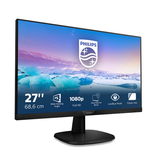 MONITOR PHILIPS 27" LED IPS FORMATO 16:9 CONTRASTO 1.000:1 1xVGA 1xHDMI 1xDVI BLACK ITALIA 273V7QDSB/00
