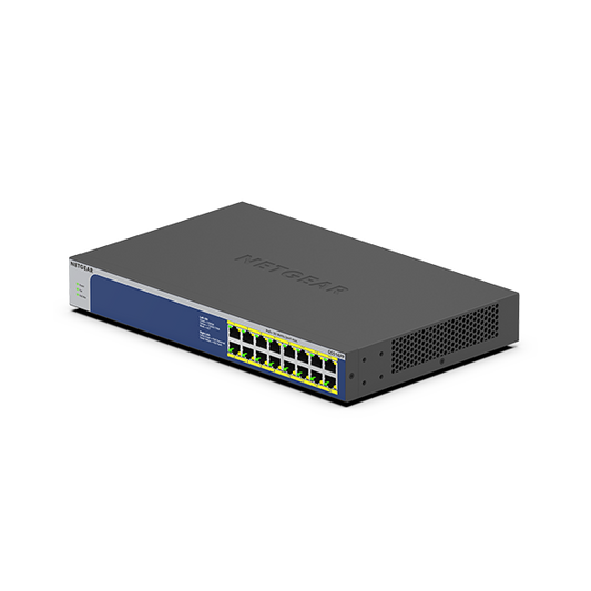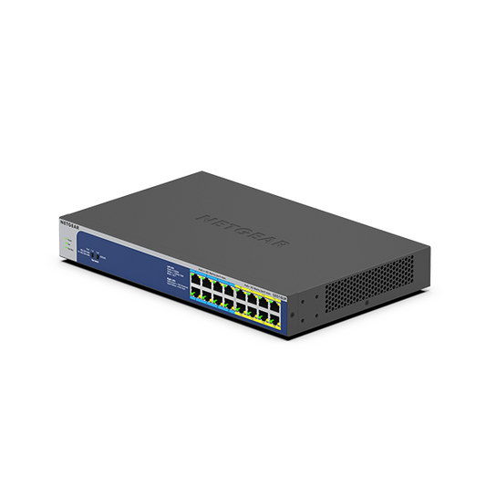 NETGEAR GS516PP Non gestito Gigabit Ethernet [10/100/1000] Supporto Power over Ethernet [PoE] Blu, Grigio (NETGEAR GS516PP - Switch - unmanaged - 16 x 10/100/1000 [PoE+] - desktop, montabile su rack