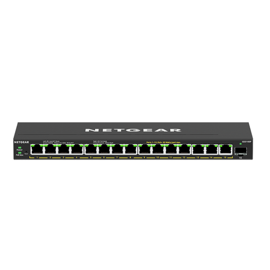 NETGEAR GS316P Non gestito Gigabit Ethernet [10/100/1000] Supporto Power over Ethernet [PoE] Nero (16-PORT GB POE+ UNMGD SWITCH - FLEXPOE)