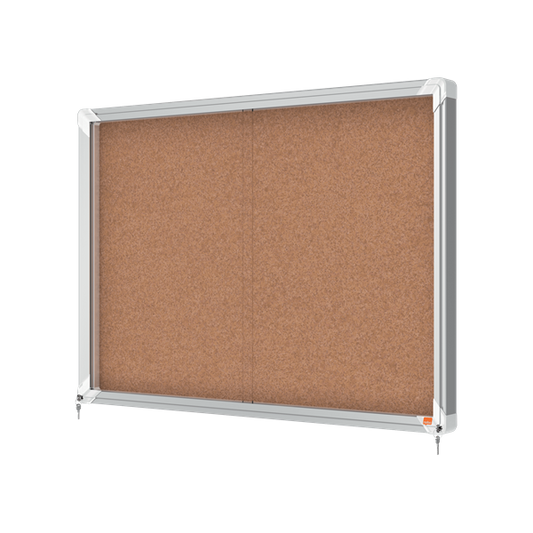 Nobo 1915331 bacheca per appunti Interno Marrone Alluminio (Nobo Premium Plus Cork Lockable Noticeboard Display Case Sliding Door 8 x A4 925x668mm 1915331 DD)