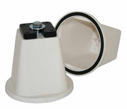 4 supporti a cono RAL 1013 con piastrine anti-vibranti per unità esterne di climatizzazione. La confezione comprende anche 4 viti M8 con ranelle. La portata massima certificata è di 500 Kg/pz.