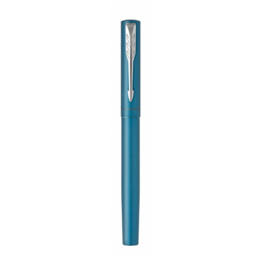 PARKER VECTOR XL PENNA ROLLER PUNTA F CORPO TEAL METALLIZZATO PUNTALE CROMATO INCHIOSTRO NERO CONFEZIONE REGALO