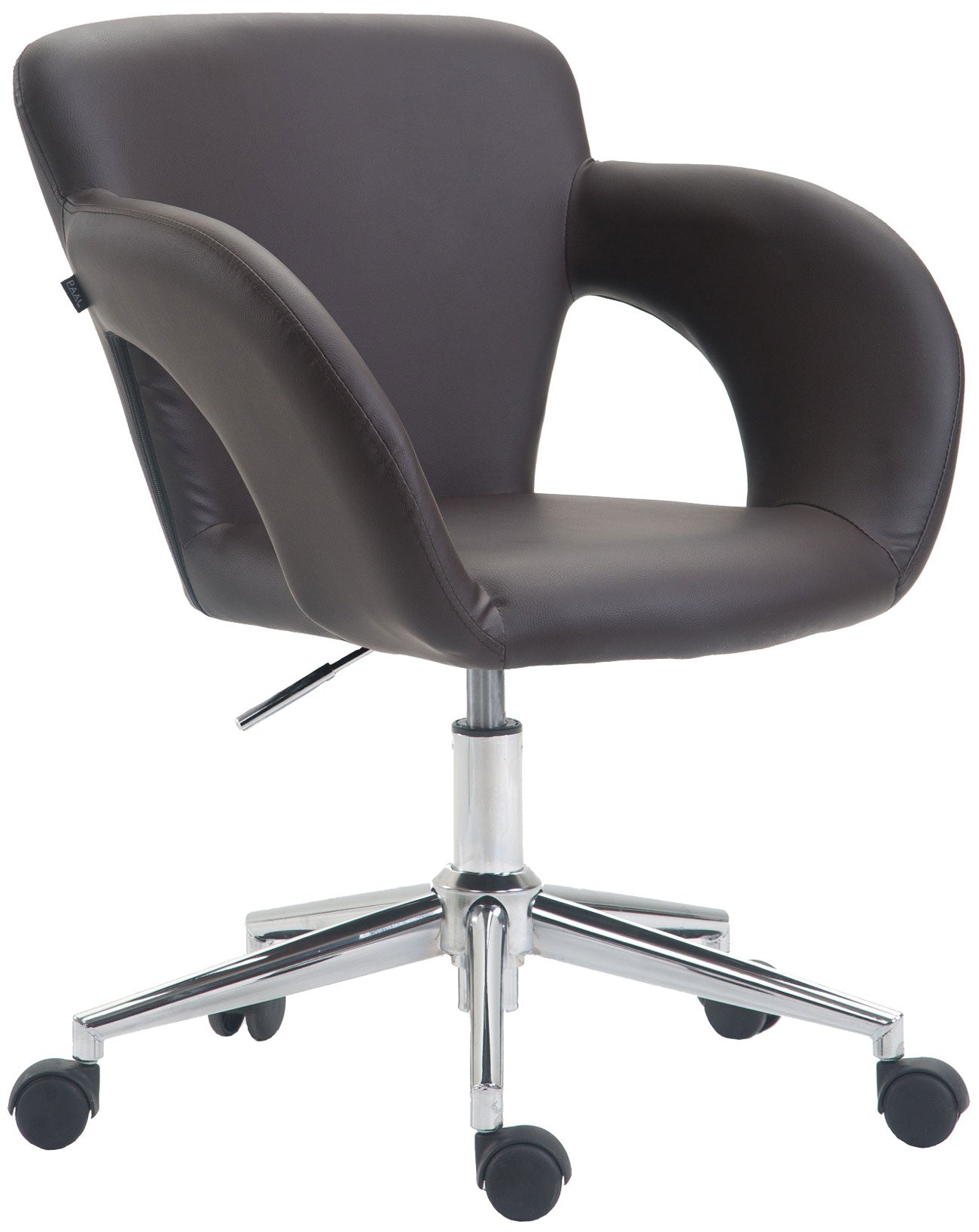La sedia da ufficio si contraddistingue per le sue linee moderne e di design. La poltroncina girevole vanta comoda imbottitura e fodera in similpelle elastica e facile da pulire. La seduta è regolabile in altezza, per potersi adattare a diverse superfici e tavoli. Le forme della seduta sono ergonomiche e confortevoli. Il sedile poggia in maniera stabile su un telaio in metallo cromato, composto da 5 ruote a basso attrito.