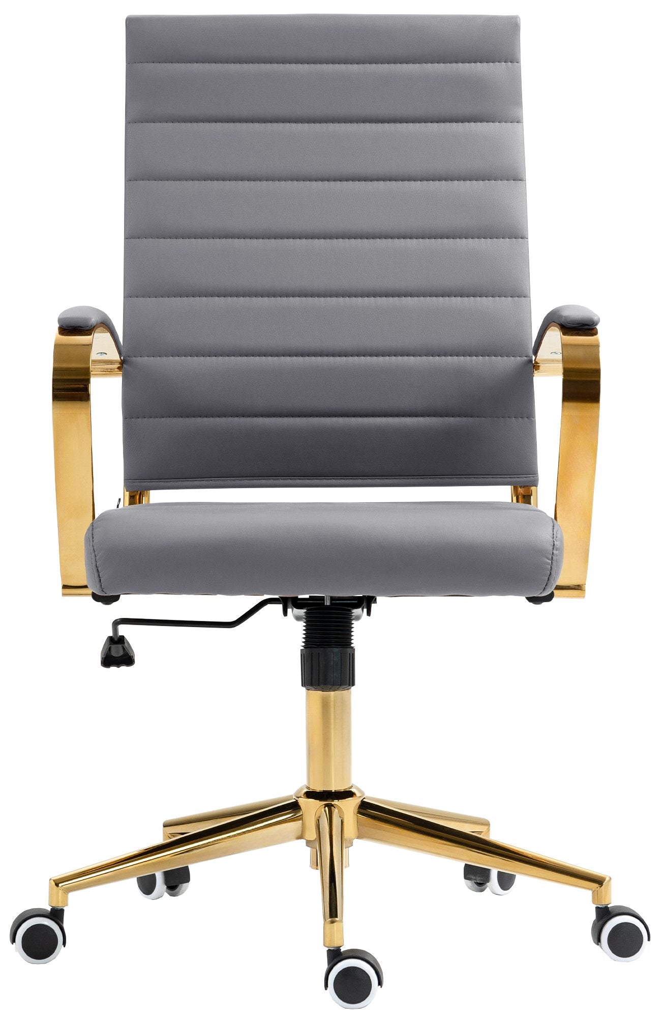 La struttura robusta garantisce un'elevata stabilità e una capacità di carico massima di 136 kg. L'elegante look dorato e le ruote gommate a scorrimento regolare proteggono il pavimento e aggiungono un tocco di eleganza all'ufficio.