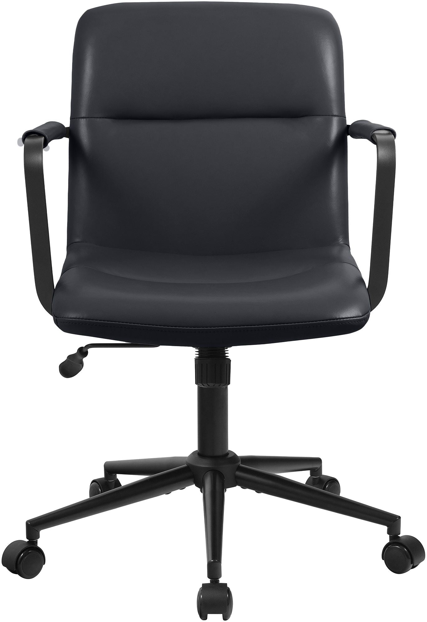 Il telaio in metallo nero con un robusto pistone a gas garantisce stabilità, mentre le ruote in PU consentono movimenti silenziosi e flessibili.