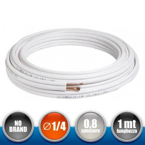 Tubo in rame rivestito, con diametro 1/4 pollice e spessore 0,8 mm, per impianti di climatizzazione (prezzo al metro).