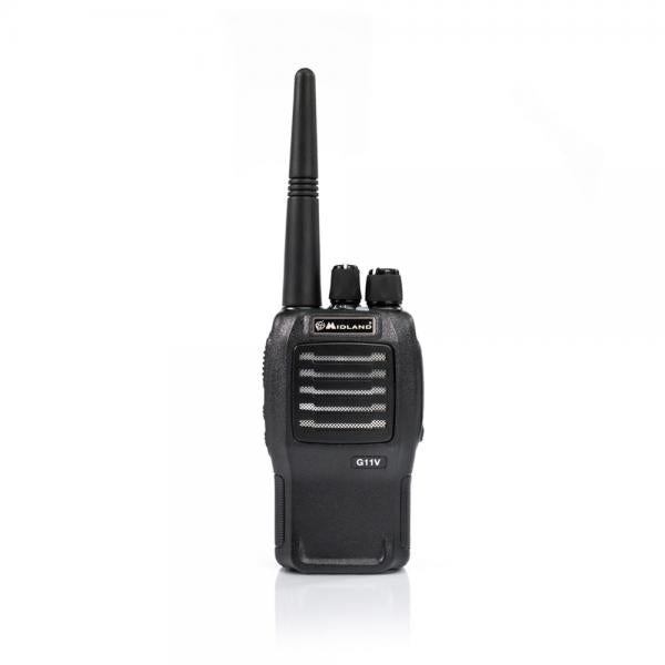 Midland G11V si arricchisce rispetto alla precedente versione della funzione "Voice announcement" cioè segnala vocalmente il canale selezionato. E' una radio robusta e affidabile, grazie allo chassis di metallo, curata fin nei minimi particolari. La manopola posizionata vicino all’antenna permette una facile ed intuitiva selezione dei canali e le funzioni sono attivabili semplicemente tramite i due tasti laterali. E’ inoltre caratterizzata da un audio chiaro e squillante, per comunicazioni di alta qualità.?
