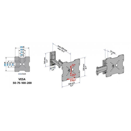 MELICONI CME EDR200 STAFFA MONTAGGIO A PARETE CON DOPPIO BRACCIO INCLINABILE PESO MAX 17KG MIN 26" MAX 40" COLORE NERO