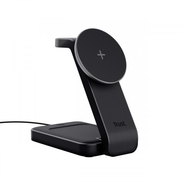 TRUST VIRO 3 IN 1 CARICABATTERIE MAGNETICO 20 W PER iPHONE - APPLE WATCH - AIRPODS CON STAND RICHIUDIBILE NERO