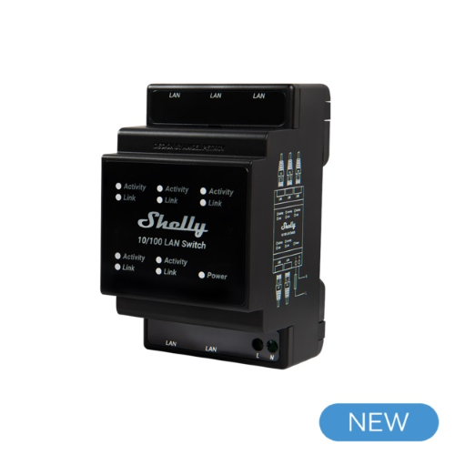 Shelly LAN Switch - Interrut DIN rail con 5 porte RJ45 ether