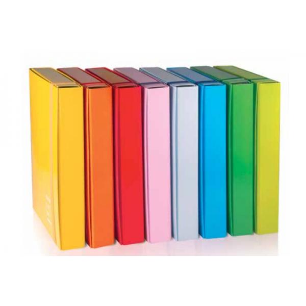 Cartella rivestita con carta, monopatinata lucida, 3 lembi. Chiusura con elastico piatto