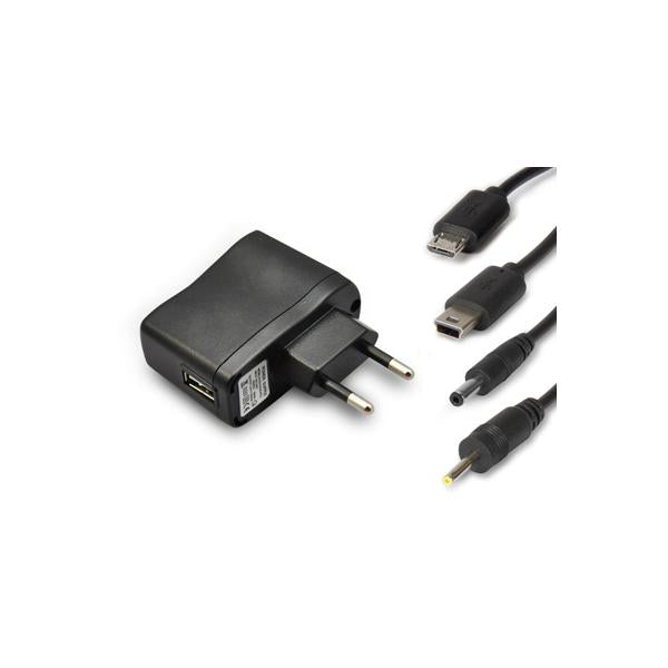 Alimentatore da parete per tablet e smartphone Universal Kit è la soluzione 4 in 1 per ricaricare i propri dispositivi mobili sia a casa che in viaggio. La pratica porta USB insieme ai 4 diversi connettori di alimentazione intercambiabili in dotazione consentono di alimentare la maggior parte dei dispositivi mobili ricaricabili tramite USB quali Smartphone, Tablet e lettori MP3. - Alimentatore USB da parete per smartphone, tablet pc e lettori mp3; - Compatibile con qualsiasi dispositivo portatile ricaricabile tramite USB; - Utilizzabile con una comune presa di corrente da 220V.