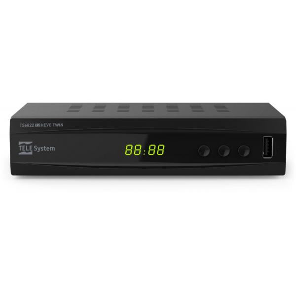 TELESYSTEM TS6822 DECODER TWIN TUNER DIGITALE TERESTRE DVB-T2 HEVC USB COLORE NERO