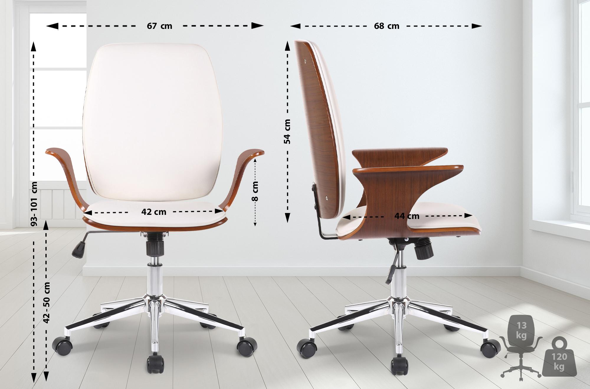 La sedia imbottita Burbank risalta per il suo stile unico e i materiali pregiati, ottimale come arredo elegante per ufficio o studio privato. Il design moderno è dato dagli inserti in legno che riguardano la parte posteriore dello schienale e i braccioli. L'imbottitura e la fodera, a scelta tra similpelle e stoffa, contribuiscono a rendere questa sedia presidenziale un ottimo compromesso tra stile e comfort. Il telaio, regolabile per soddisfare ogni tipo di esigenza e con un meccanismo basculante integrato, si compone di una solida struttura in metallo cromo e poggia su cinque resistenti ruote che permettono alla sedia di essere spostata facilmente senza rischi per le pavimentazioni.