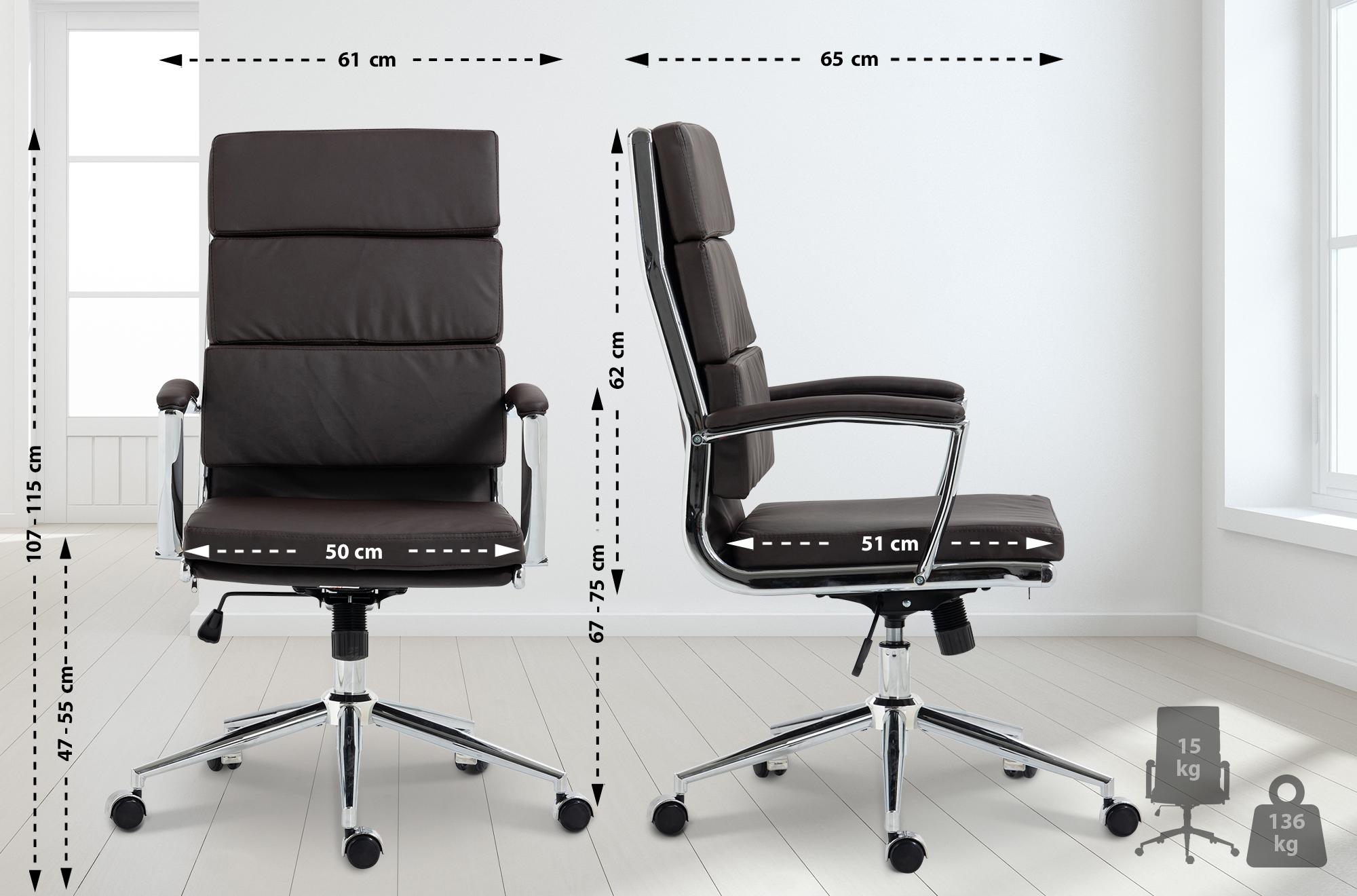 La sedia da ufficio Cleveland combina un design ergonomico con un comfort individuale e un look elegante. È l'aggiunta perfetta a qualsiasi ufficio in cui la salute e il benessere sul posto di lavoro sono importanti. Lo schienale triplo imbottito e la forma ergonomica supportano la tua posizione di seduta naturale. Con il sedile regolabile in altezza, la funzione basculante regolabile e le ruote scorrevoli e girevoli a 360°, la sedia si adatta in modo flessibile alle vostre esigenze. La scelta tra rivestimento in vera pelle, similpelle o tessuto permette di personalizzare il design secondo il proprio gusto personale. Il telaio cromato offre stabilità e una lunga durata. Con il suo ampio sedile, il Cleveland offre un comfort di seduta ottimale anche nelle lunghe giornate di lavoro.