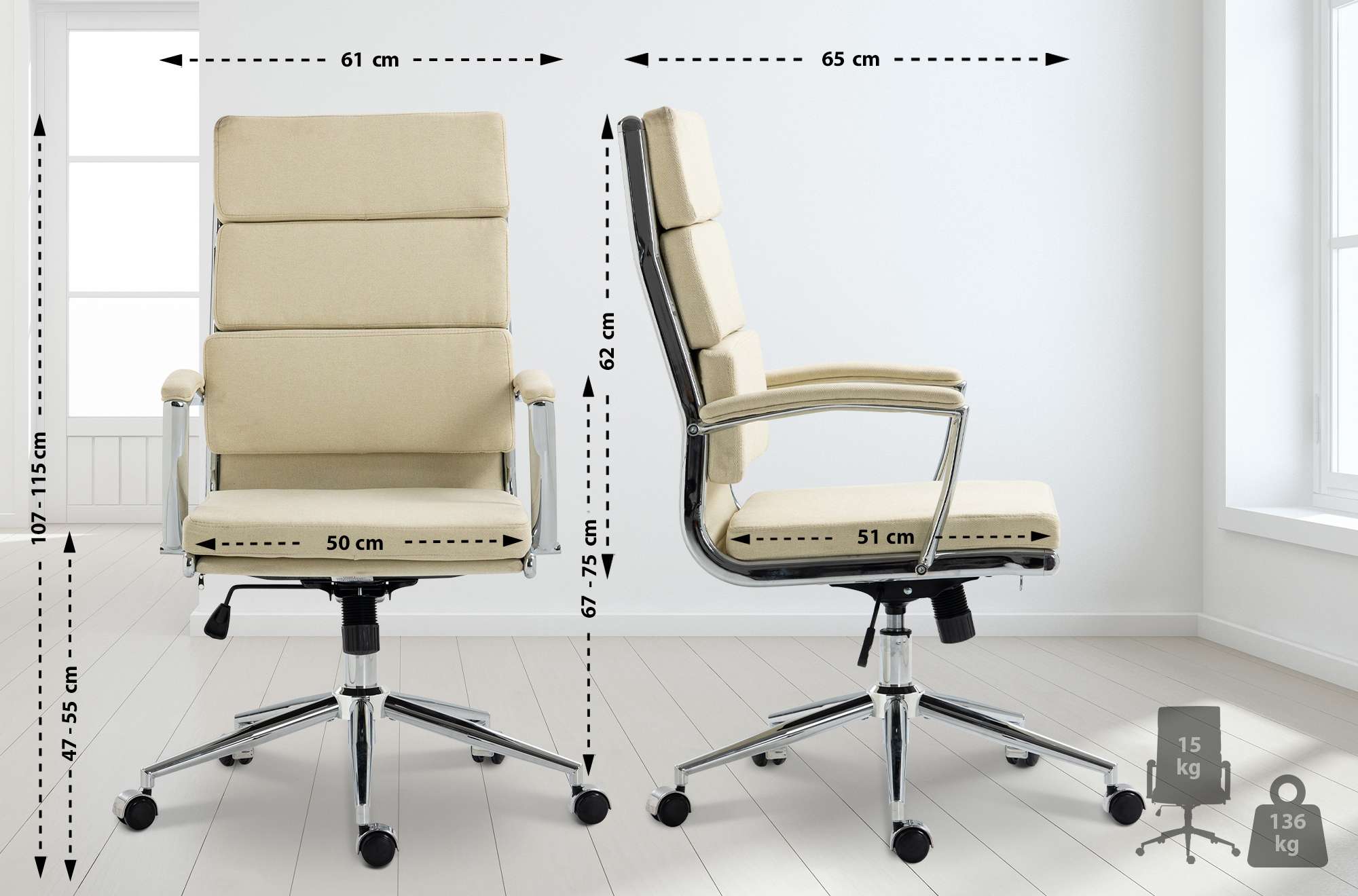 La sedia da ufficio Cleveland combina un design ergonomico con un comfort individuale e un look elegante. È l'aggiunta perfetta a qualsiasi ufficio in cui la salute e il benessere sul posto di lavoro sono importanti. Lo schienale triplo imbottito e la forma ergonomica supportano la tua posizione di seduta naturale. Con il sedile regolabile in altezza, la funzione basculante regolabile e le ruote scorrevoli e girevoli a 360°, la sedia si adatta in modo flessibile alle vostre esigenze. La scelta tra rivestimento in vera pelle, similpelle o tessuto permette di personalizzare il design secondo il proprio gusto personale. Il telaio cromato offre stabilità e una lunga durata. Con il suo ampio sedile, il Cleveland offre un comfort di seduta ottimale anche nelle lunghe giornate di lavoro.