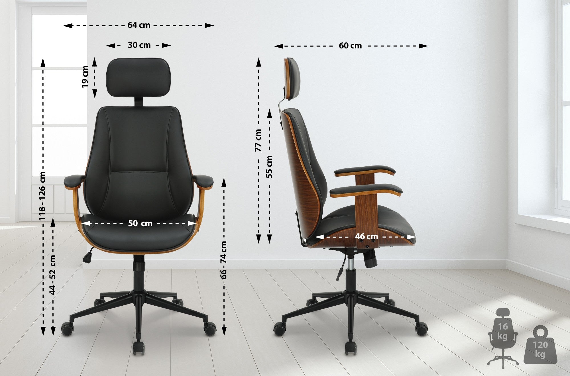 La sedia da ufficio Lugo unisce comfort ergonomico e design elegante. Caratterizzata da un morbido rivestimento in ecopelle e da un esclusivo schienale in legno, questa poltrona direzionale offre un poggiatesta e braccioli imbottiti per un maggiore comfort. Il sedile regolabile in altezza e la funzione girevole a 360 gradi garantiscono un adattamento ottimale alle diverse dimensioni del corpo e agli ambienti di lavoro. La struttura robusta può sopportare carichi fino a 120 kg e le ruote scorrevoli garantiscono una facile manovrabilità. Che si tratti di giornate di lavoro intense o di lunghe sessioni di gioco, Lugo offre sempre un comfort di seduta ottimale.