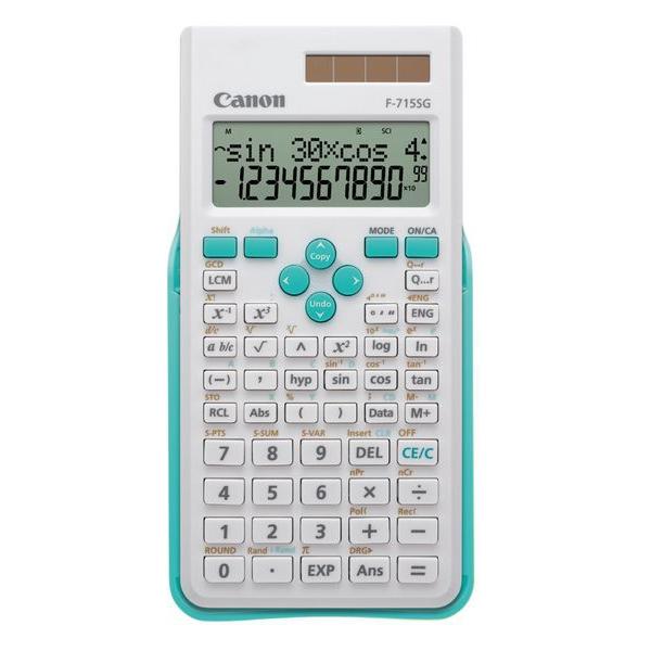 La calcolatrice scientifica F-715SG, dotata di funzioni avanzate, presenta un ampio display LCD a due righe. È realizzata in parte con materiali Canon riciclati, che la rendono un prezioso strumento a ridotto impatto ambientale.
