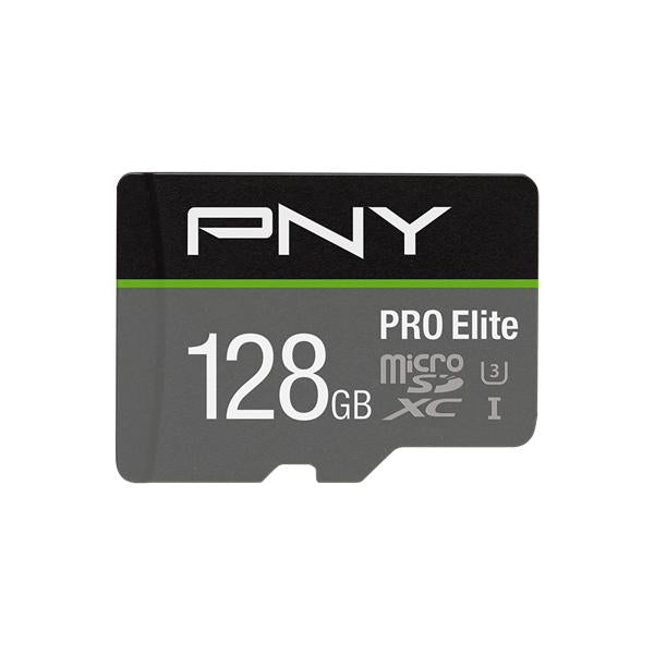 PNY PRO ELITE SCHEDA MICROSDXC DA 128 GB CLASSE 10 UHS-I U3 100 MB/S A1 V30 NERO GRIGIO