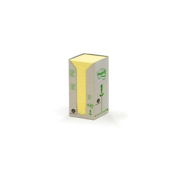 3M POST-IT NOTE 654-1T BLOCCHETTI 100 FOGLI POST-IT IN CARTA RICICLATA 76MMx76MM COLORE GIALLO CONF. 16 Pz.