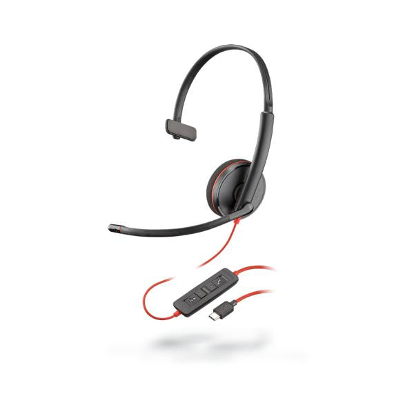 POLY Blackwire C3210 Pulsera Padiglione auricolare USB tipo-C Nero, Rosso