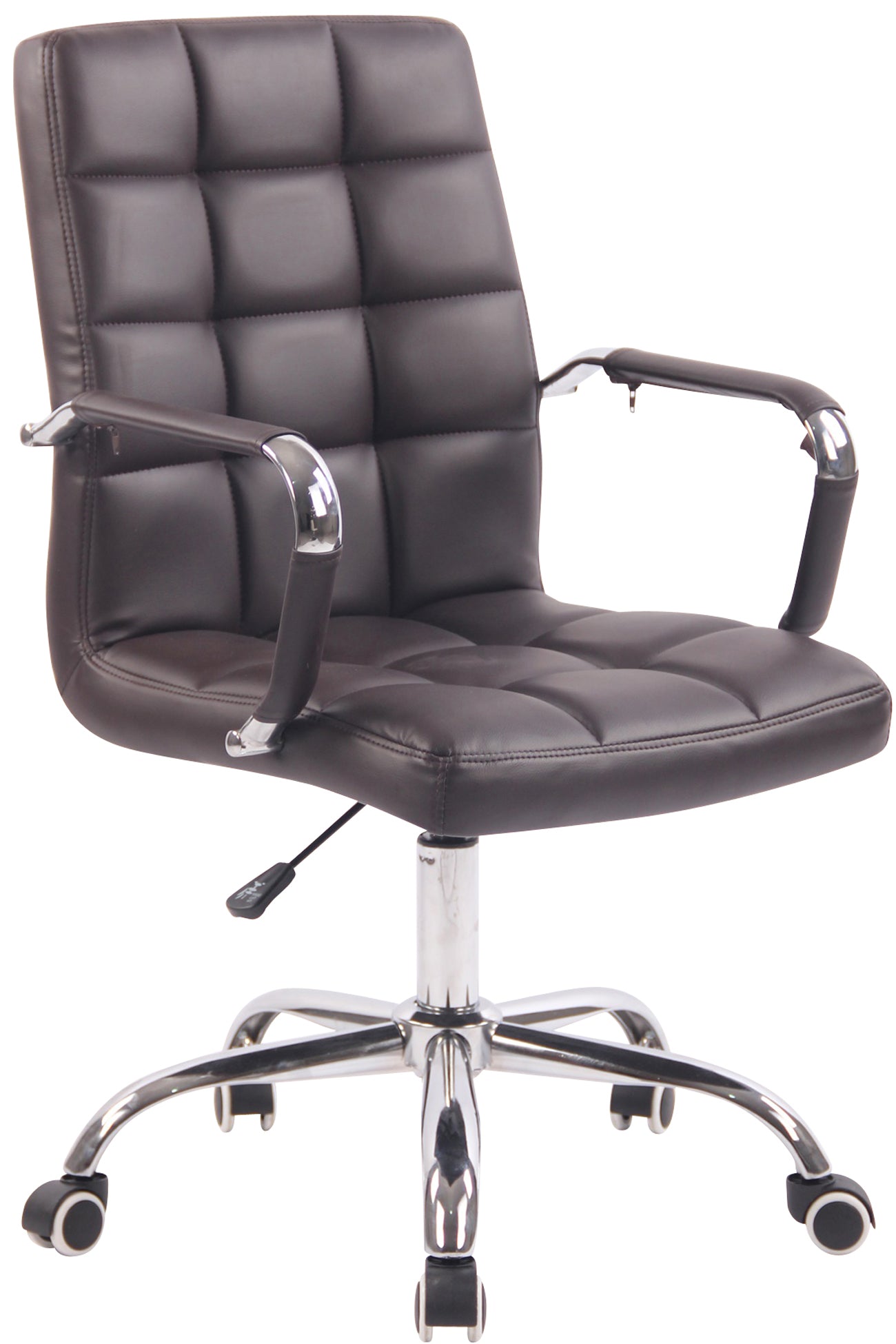Sedia da ufficio trapuntata con motivi quadrati e comoda imbottitura chic e confortevole. La sedia da scrivania si contraddistingue per il suo stile elegante e versatile, ideale per ufficio, studio o per la cameretta studio di casa. La combinazione di similpelle e metallo la rende la poltrona ufficio ideale.