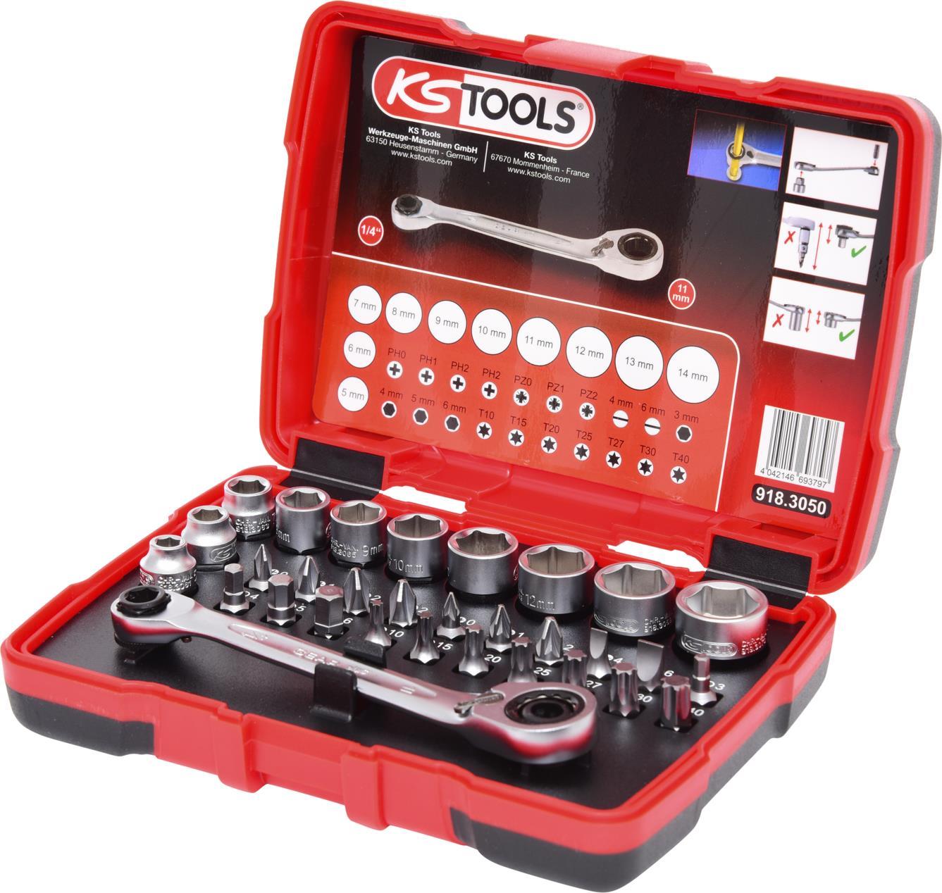 KS TOOLS 1/4" + 11 mm Durchgangs-Steckschlssel- und Bit-Satz, 31-tlg. (918.3050)