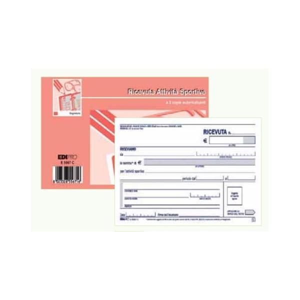 EDIPRO RICEVUTE PAGAMENTO ATTIVITA' SPORTIVE BLOCCO AUTOCOPIANTE 10 FOGLI 99X170 mm 100 FOGLI CONF 10 Pz.