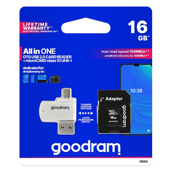Goodram microSD 16GB CARD class 10 + adpter + card reader - blister