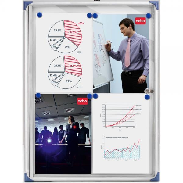 Il design ultra sottile rende queste pratiche bacheche perfette per l'uso in corridoi e posti di lavoro. Dotate di serratura consentono di esporre informazioni importanti con facilità e in sicurezza. Può essere utilizzata con magneti per appendere note o con pennarelli cancellabili a secco.