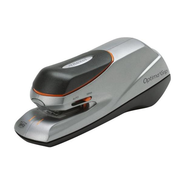 Optima Grip è una cucitrice elettrica compatta per scrivania che può anche essere utilizzata manualmente. Cuce fino a 20 fogli senza incepparsi se utilizzata con i punti metallici Optima. La cucitura è di tipo standard. E` dotata di uno scalino frontale per indicare il massimo numero di fogli che è in grado di cucire. Ha una profondità di cucitura di 26mm. Viene fornita con 1.000 punti metallici Rexel Optima No. 56 e un adattatore per la presa di corrente. Funziona anche con 4 batterie AA (non incluse). - Cuce fino a 20 fogli senza incepparsi, se utilizzata con i punti Optima - È inclusa una confezione da 1.000 punti Optima No. 56 - Scalino sul fronte per indicare la massima capacità di cucitura (20 fogli) - Funzionamento elettrico e manuale - Design elegante e compatto