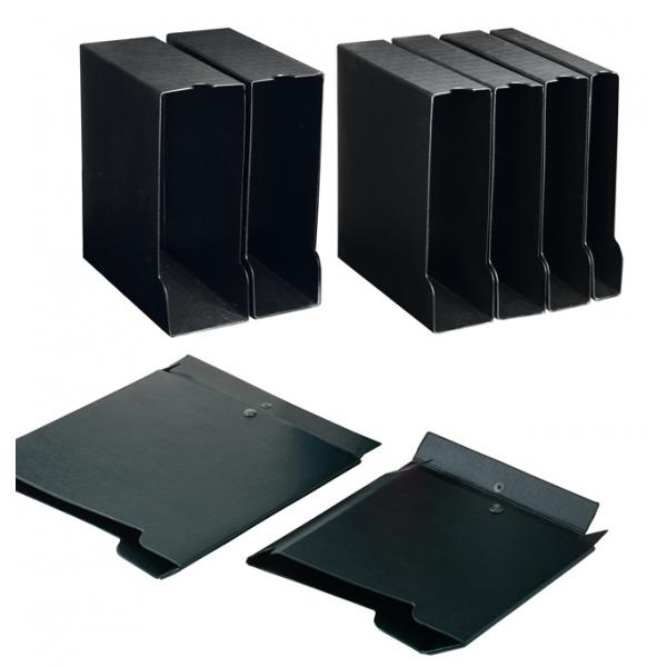Custodie in Colpan® (cartone rivestito in PVC) adatte a contenere tutti i nostri raccoglitori A4. Proteggono dalla polvere e dall'umidità, si montano in un attimo.