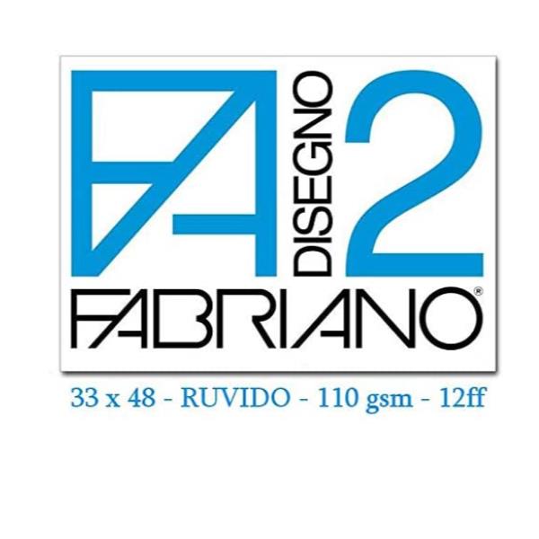 FABRIANO F2 ALBUM DA DISEGNO COLLATO 330X480 mm 110 GR 12 FOGLI RUVIDI BIANCO