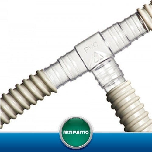 Giunto a T idoneo per convogliare 2 tubi di scarico condensa. Si può utilizzare con tubi spiralati Ø 16, Ø 18 e Ø 20 e con tubi corrugati Ø 16 e Ø 20 (mm).