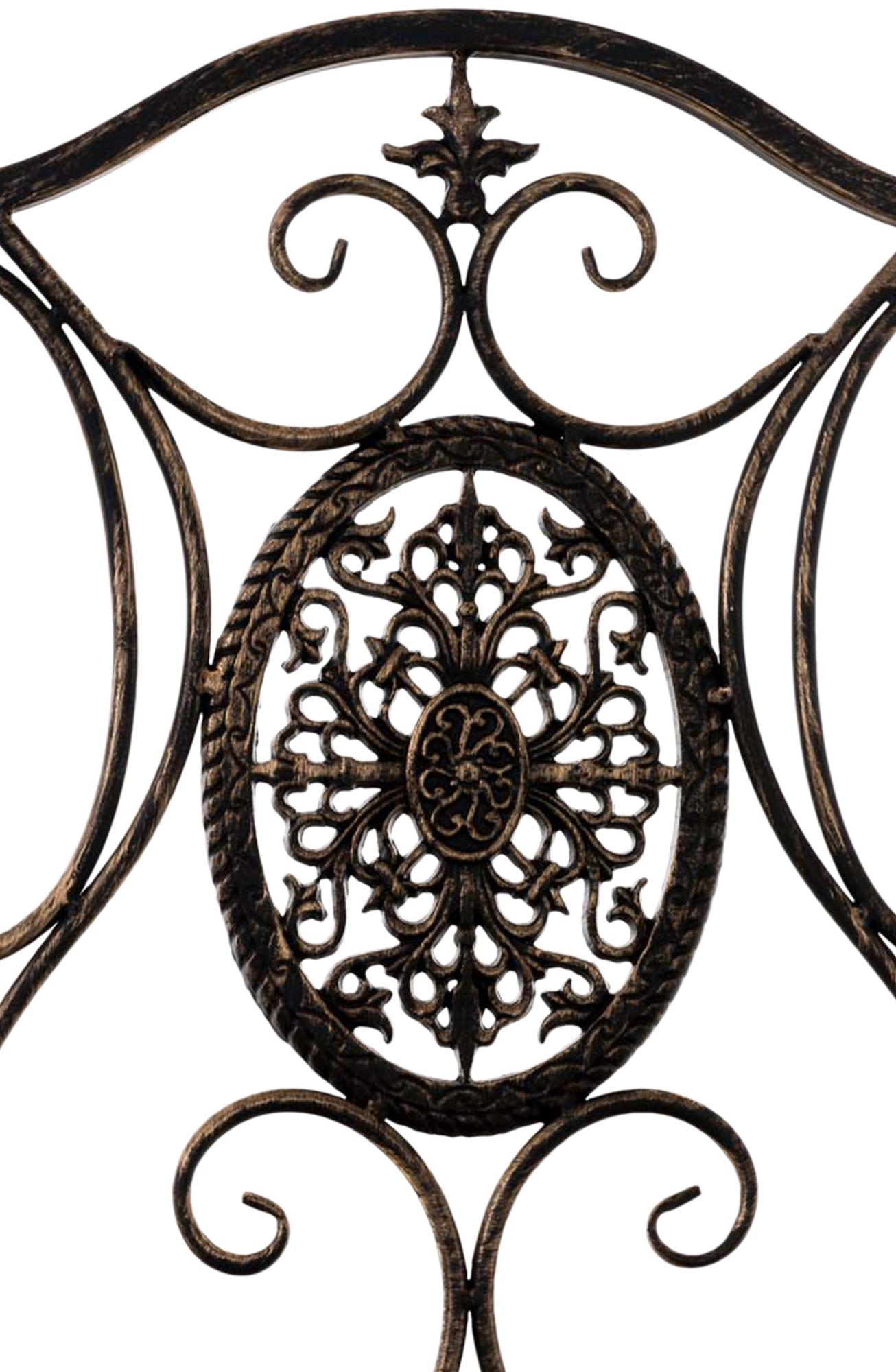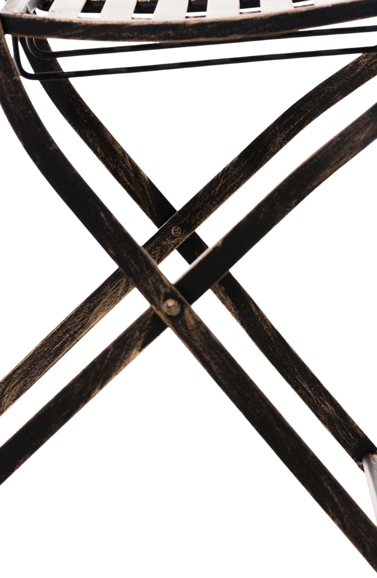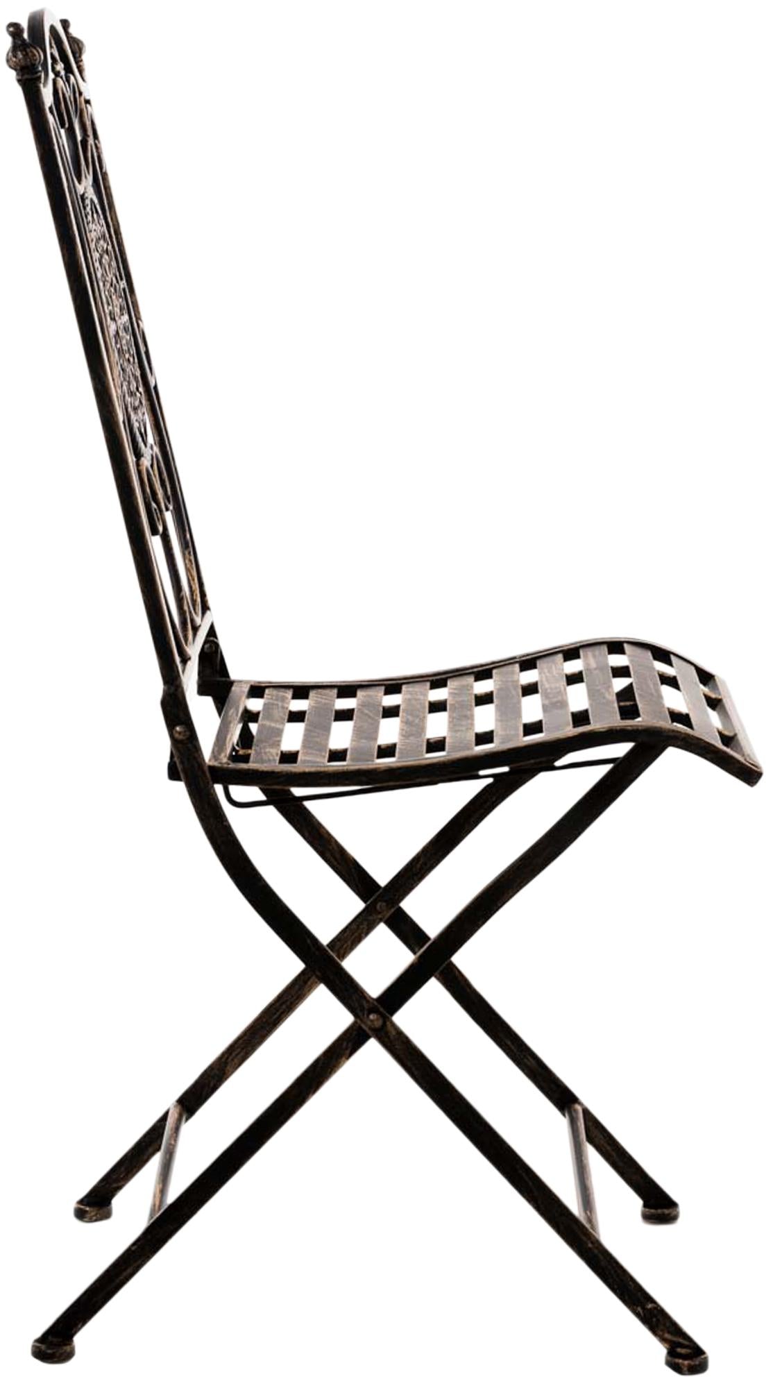 Comode e pratiche allo stesso tempo: lo schienale alto e la seduta curva permettono di sedersi comodamente. All'occorrenza, le sedie in ferro possono essere facilmente piegate e riposte per risparmiare spazio. Il prodotto è stato realizzato in ferro ed è quindi estremamente stabile. La superficie è rifinita con una patina antica realizzata a mano.