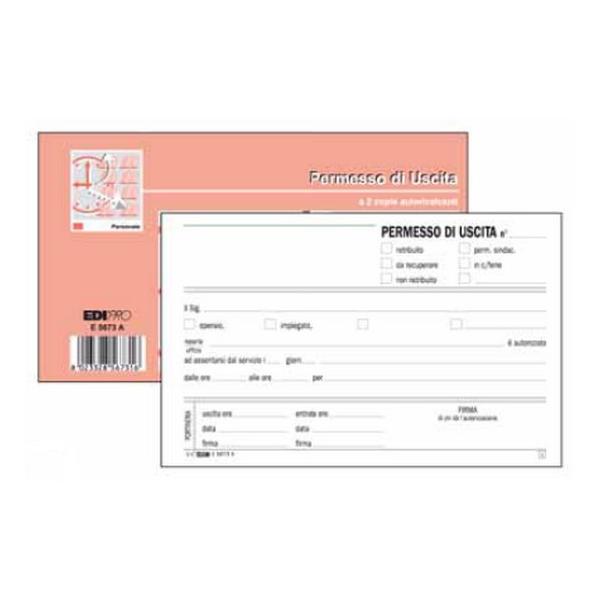 EDIPRO BLOCCO PERMESSO USCITA AUTOCOPIANTE 2 FOGLI 99X170MM 100 FOLGI CONF 10 PZ.