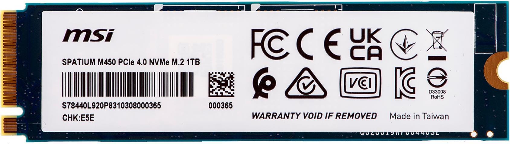 MSI SPATIUM M450 - SSD - verschlüsselt - 1TB - intern - M.2 2280 - PCIe 4,0 x4 (NVMe) (S78-440L980-P83)