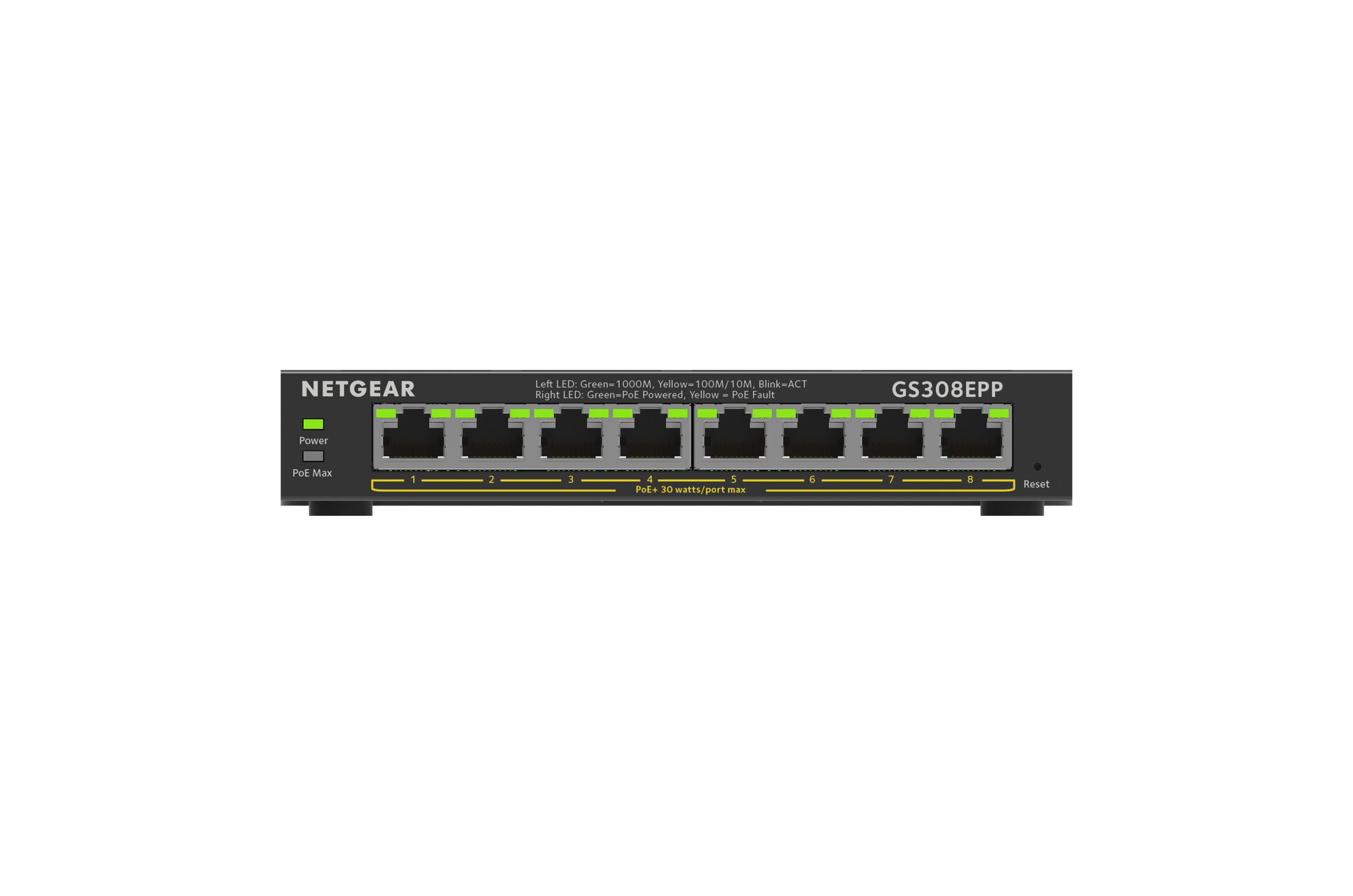 NETGEAR 8-Port Gigabit Ethernet High-Power PoE+ Plus Switch [GS308EPP] Gestito L2/L3 Gigabit Ethernet [10/100/1000] Supporto Power over Ethernet [PoE] Nero (Netgear 8Port Switch 10/100/1000 GS308EPP)