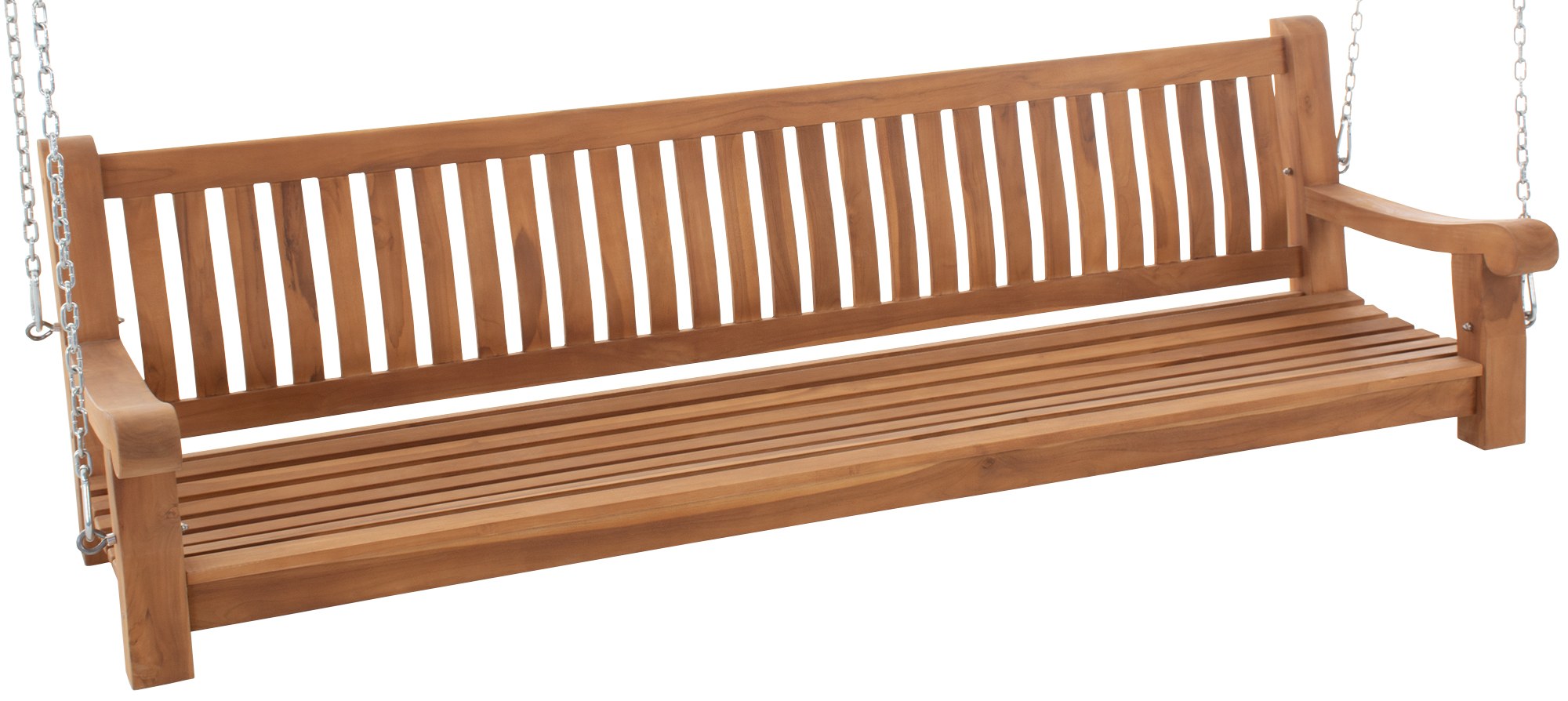 Il dondolo da giardino ha un aspetto chic con il suo esterno semplice e il colore marrone dorato del legno di teak e può essere abbinato a una varietà di stili di arredamento diversi. La panchina è ideale per rilassarsi. L'area di seduta è leggermente curva e rende la panchina confortevole anche senza imbottitura. La panca in teak è dotata anche di braccioli sui lati.